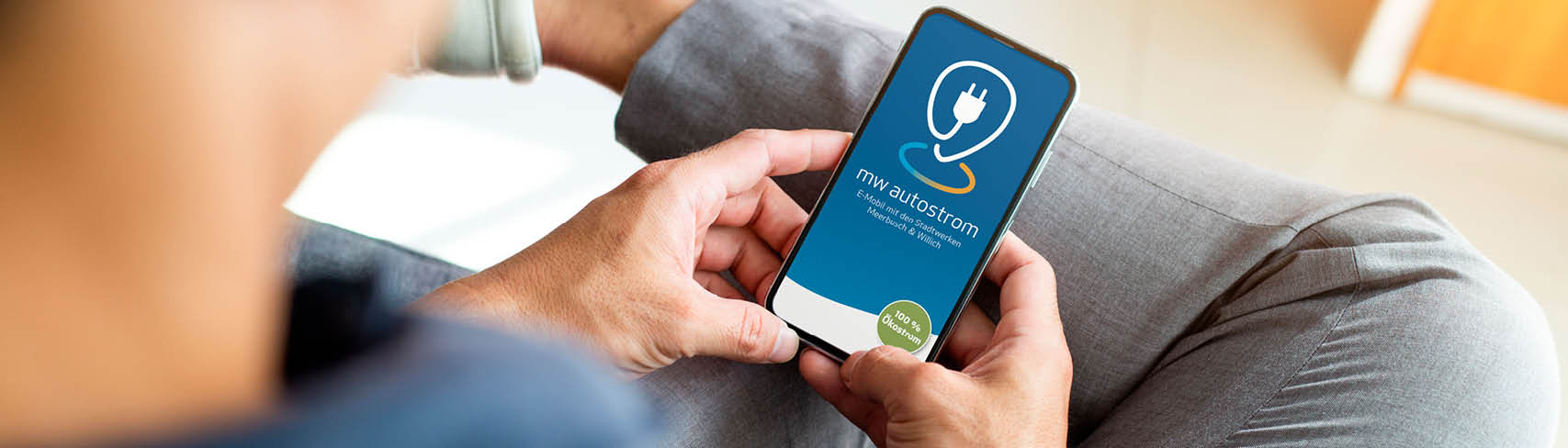 Die mw autostrom App nutzen Sie auf Ihrem Smartphone zum Laden unterwegs.